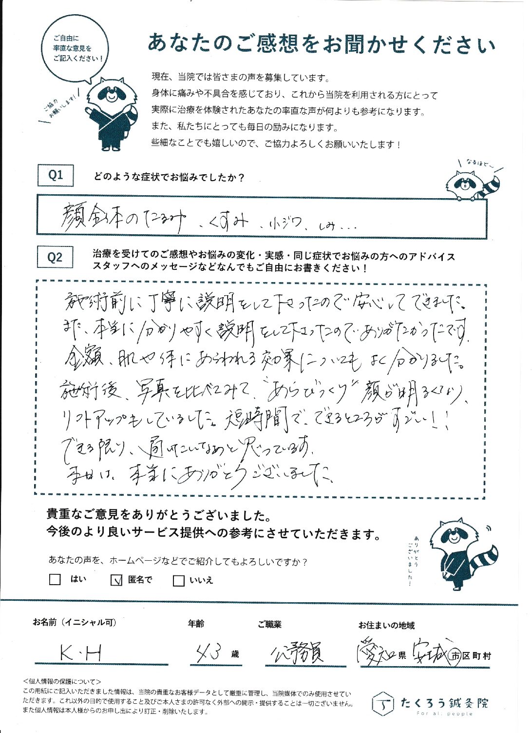 たくろう鍼灸院で施術をさせていただいたお客様のご感想を掲載しています。