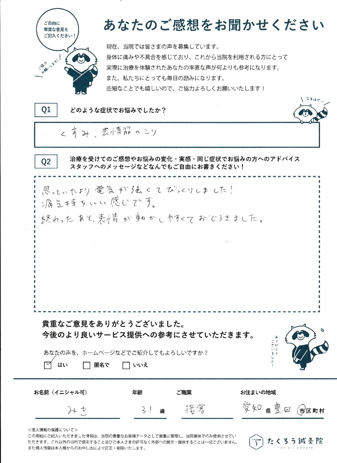 たくろう鍼灸院で施術をさせていただいたお客様のご感想を掲載しています。