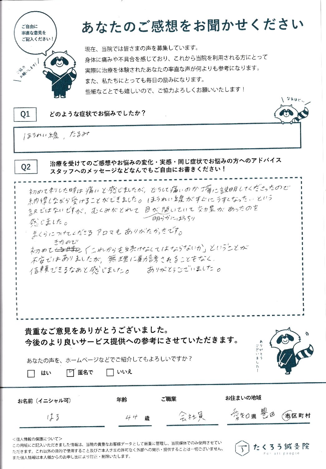 たくろう鍼灸院で施術をさせていただいたお客様のご感想を掲載しています。