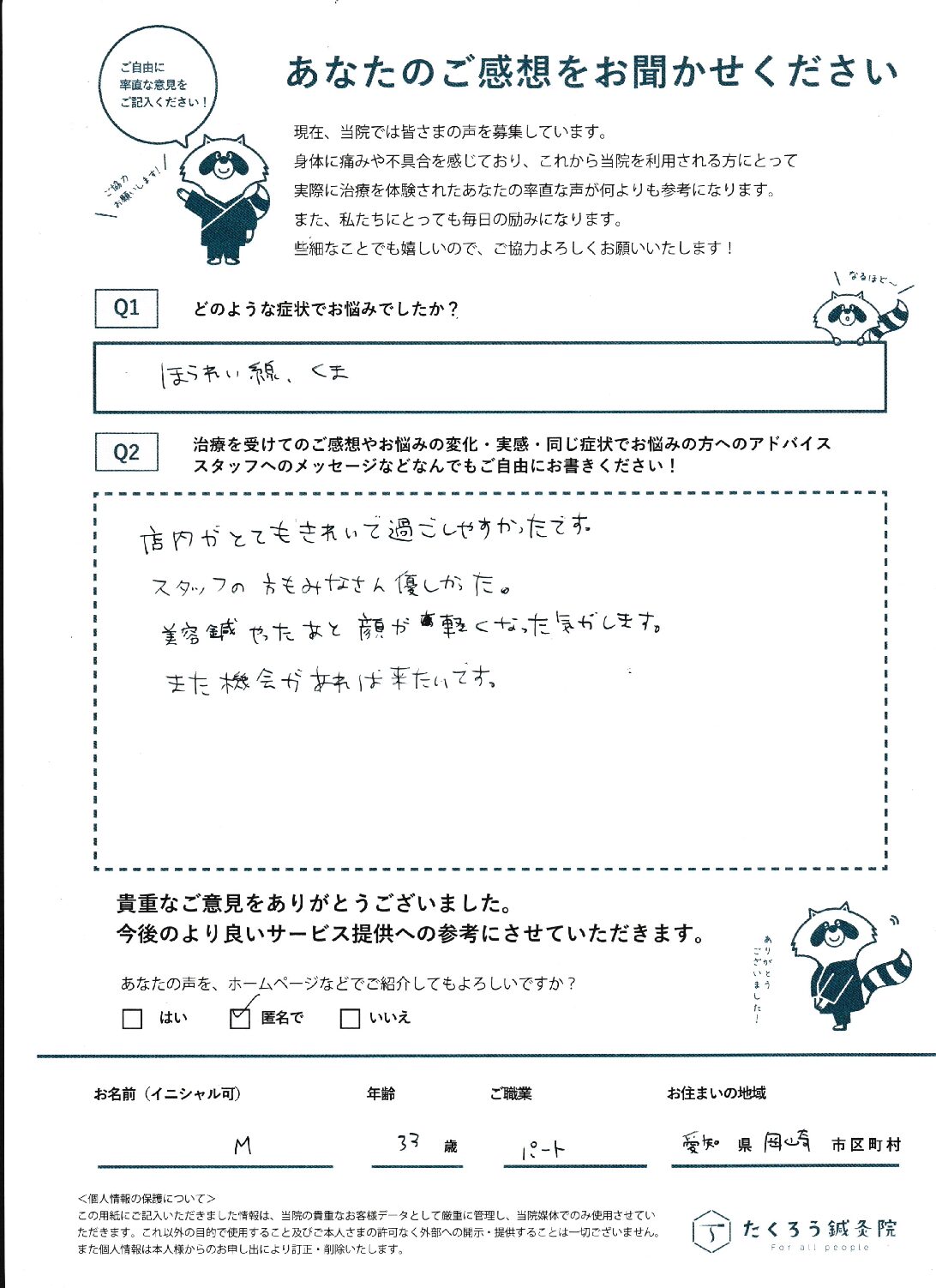 たくろう鍼灸院で施術をさせていただいたお客様のご感想を掲載しています。