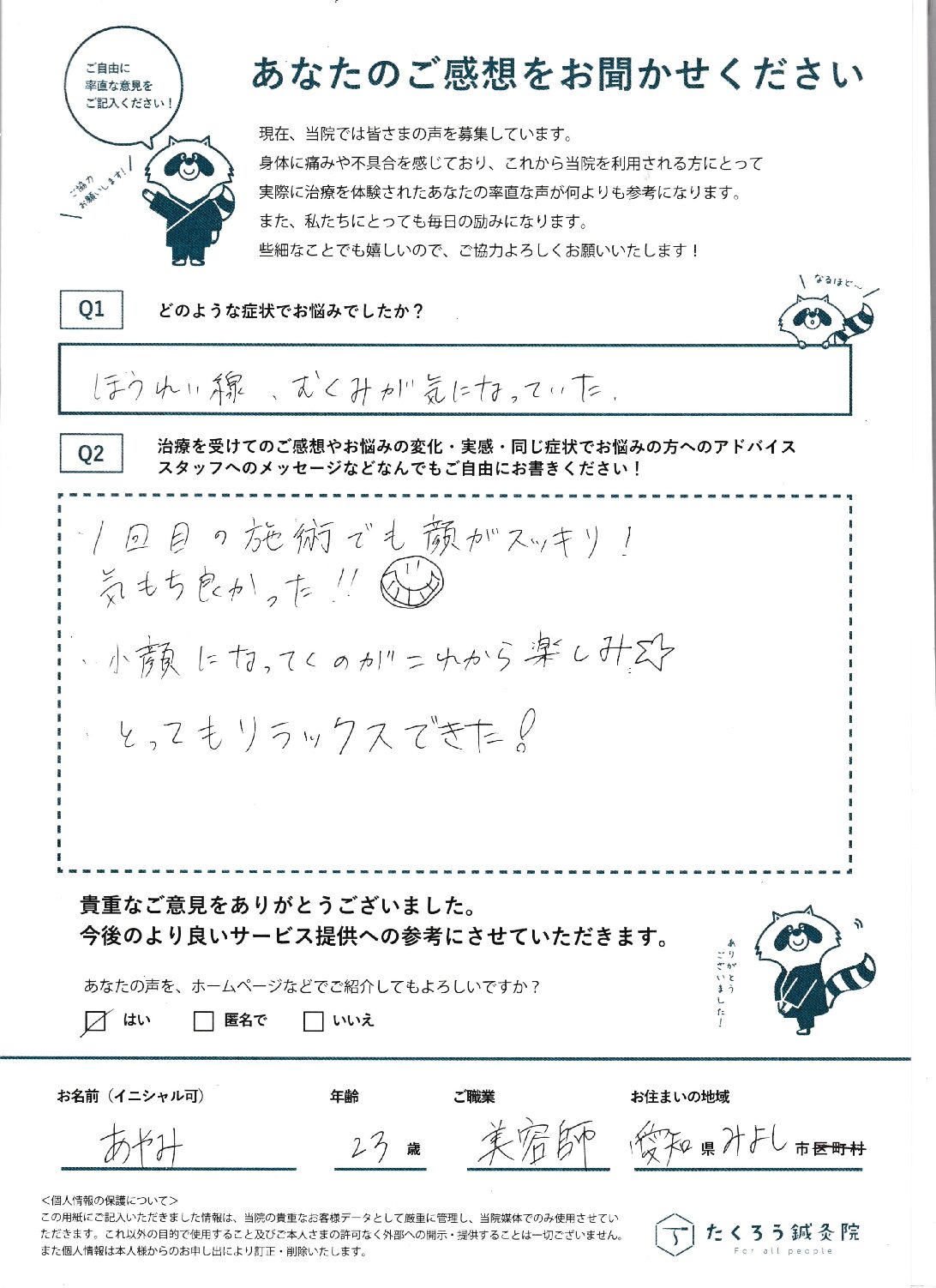 たくろう鍼灸院で施術をさせていただいたお客様のご感想を掲載しています。