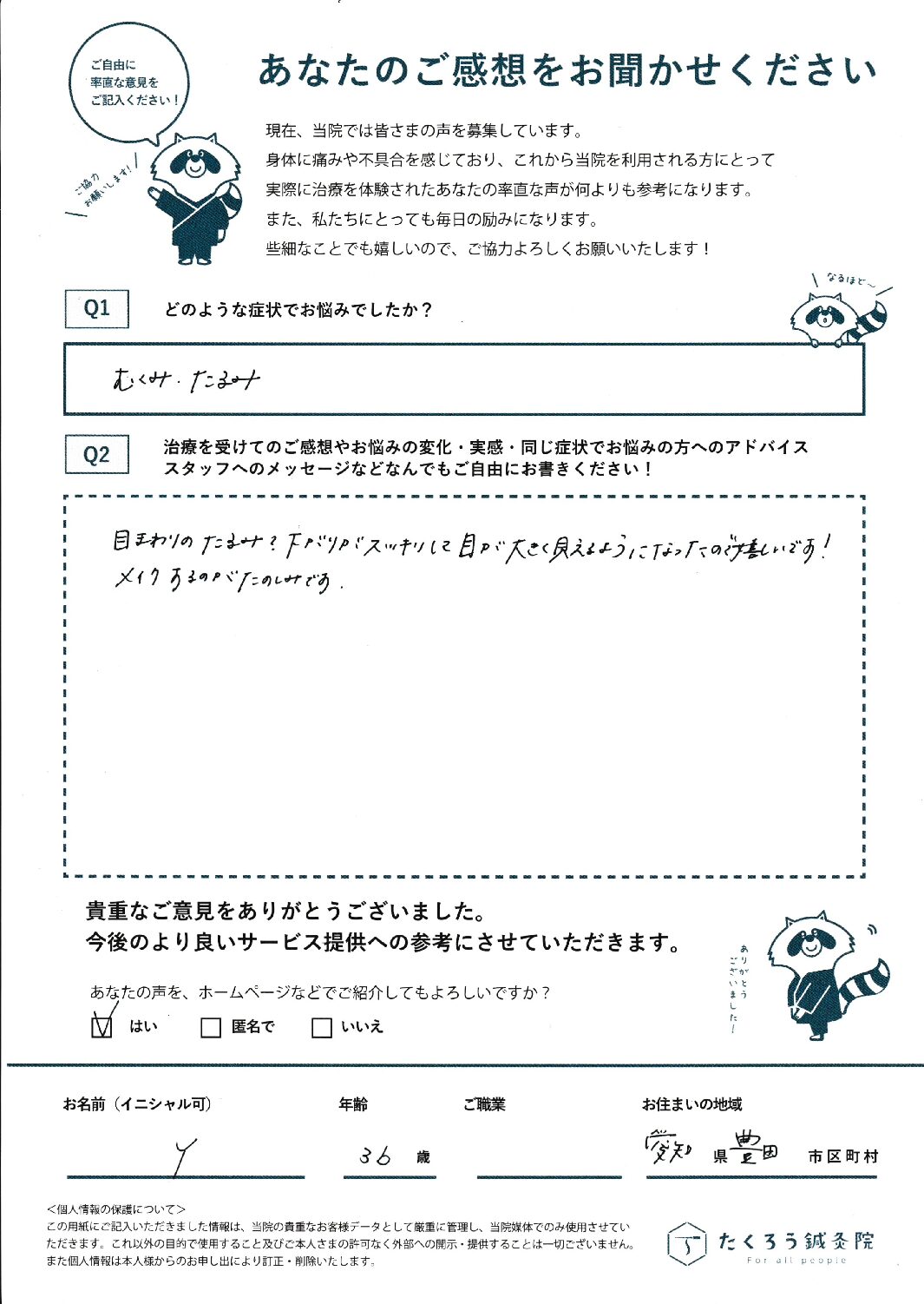 たくろう鍼灸院で施術をさせていただいたお客様のご感想を掲載しています。