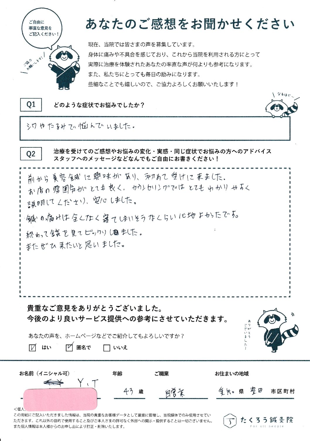 たくろう鍼灸院で施術をさせていただいたお客様のご感想を掲載しています。