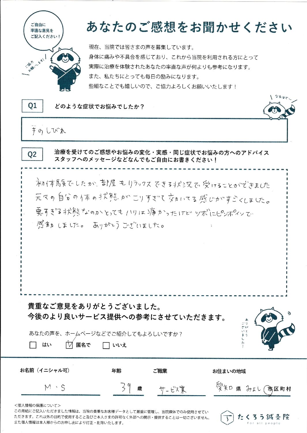 たくろう鍼灸院で施術をさせていただいたお客様のご感想を掲載しています。