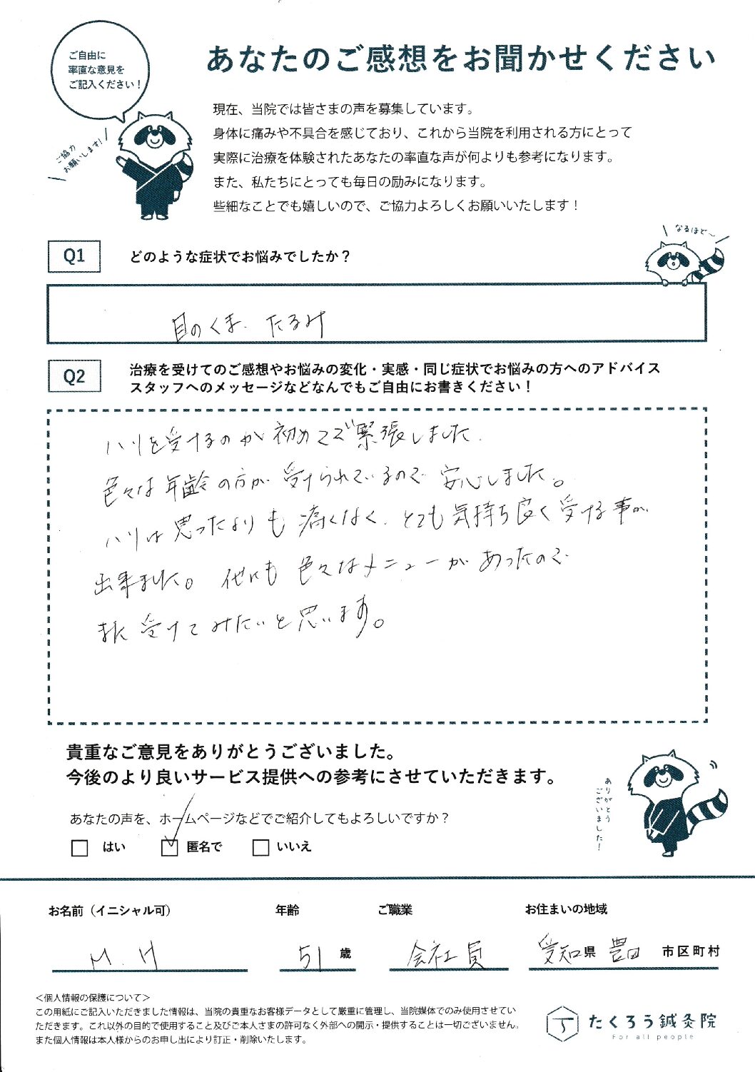 たくろう鍼灸院で施術をさせていただいたお客様のご感想を掲載しています。