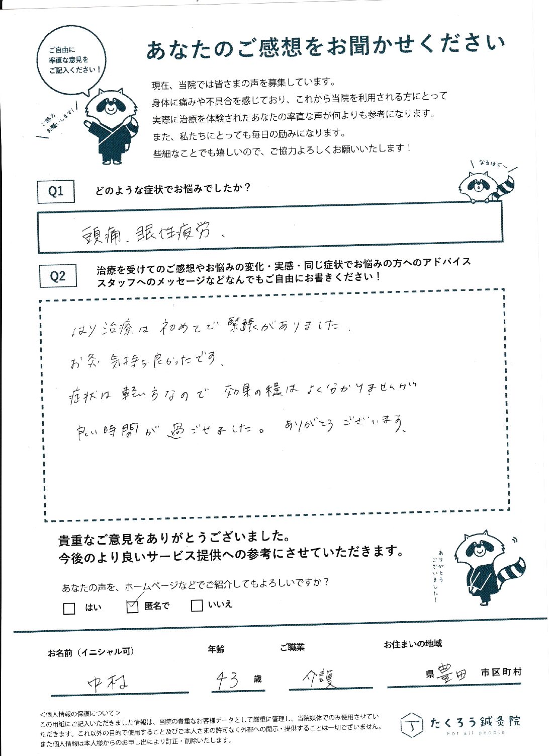 たくろう鍼灸院で施術をさせていただいたお客様のご感想を掲載しています。