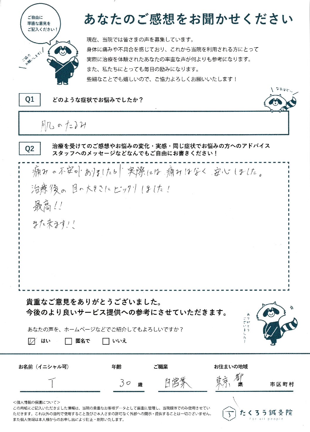 たくろう鍼灸院で施術をさせていただいたお客様のご感想を掲載しています。