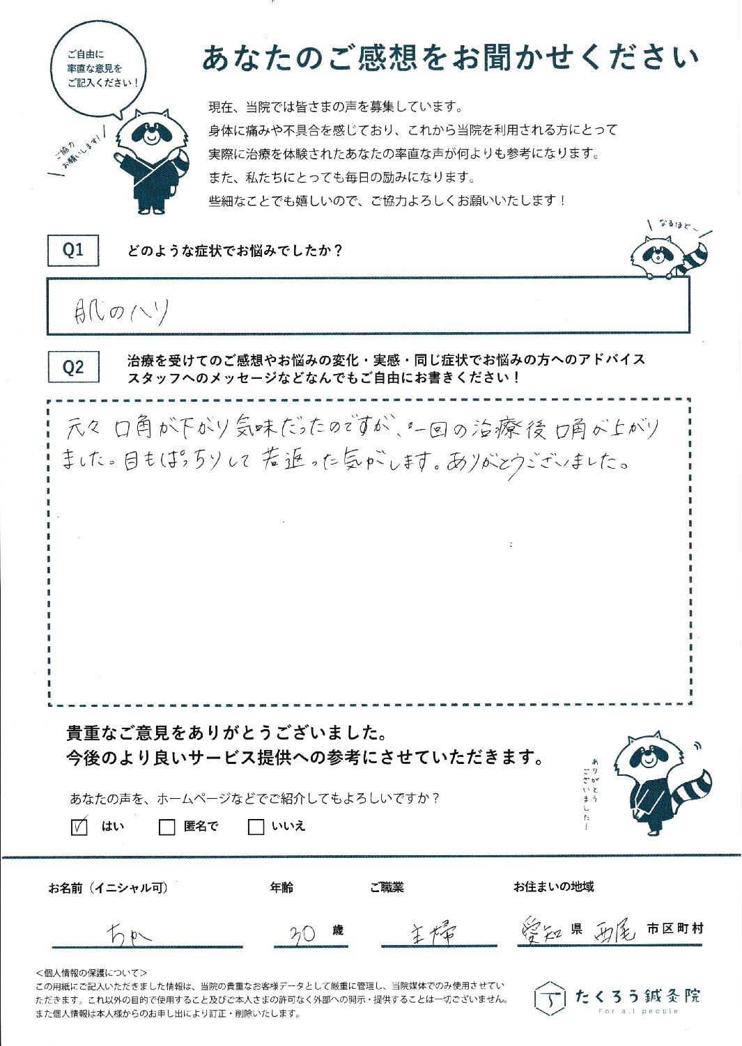 たくろう鍼灸院で施術をさせていただいたお客様のご感想を掲載しています。