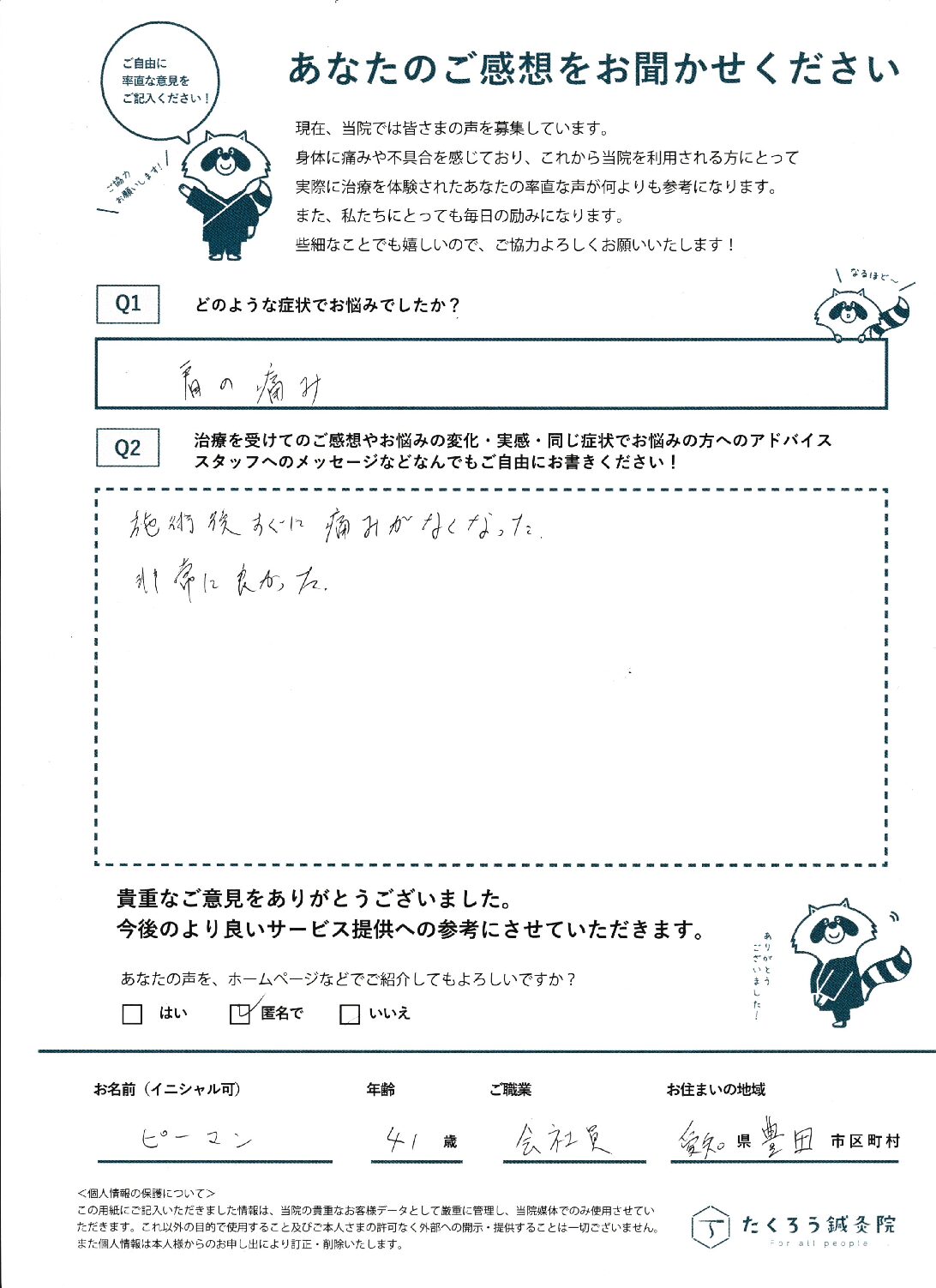 たくろう鍼灸院で施術をさせていただいたお客様のご感想を掲載しています。