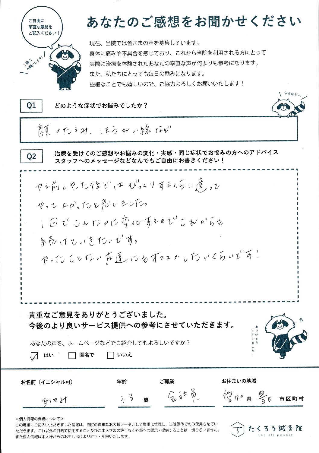 たくろう鍼灸院で施術をさせていただいたお客様のご感想を掲載しています。