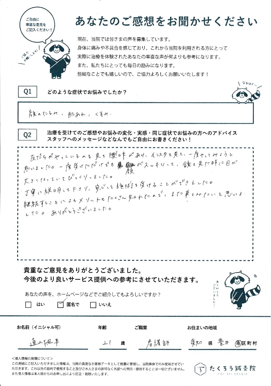 丁寧に説明して下さり、安心して施術を受ける事ができました。