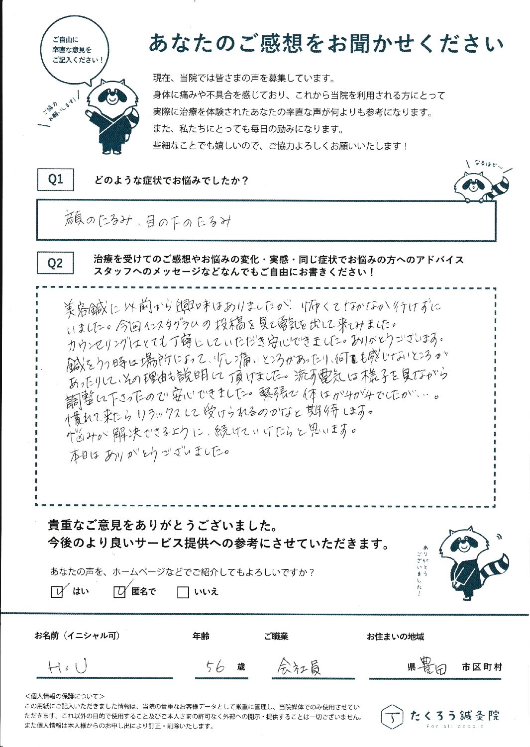 施術を受けてのご感想やお悩みの変化・実感・同じ症状でお悩みの方へのアドバイスやスタッフへのメッセージなどなんでもご自由にお書きください!