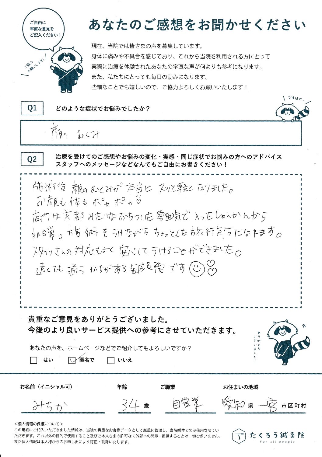 たくろう鍼灸院で施術をさせていただいたお客様のご感想を掲載しています。